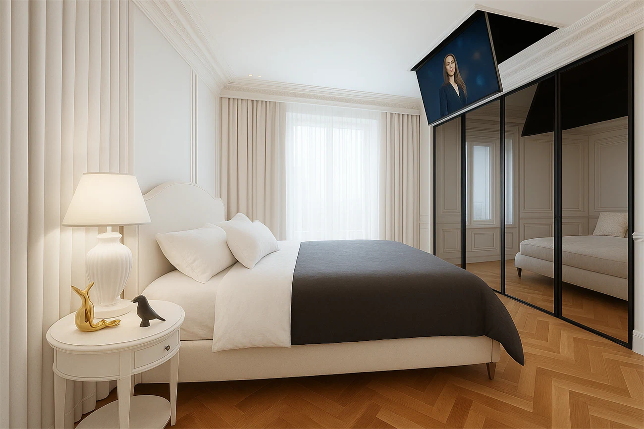 בתוך נשת גבס תקתרית ובמקומות שבהם המרחב מוגבל או נדרש מראה נקי ומודרני. מנגנון חשמלי שקט, התקנה נסתרת, שליטה מלאה מרחוק ואיכות בנייה פרימיום – כל מה שצריך לתצוגה אידיאלית בכל חלל.